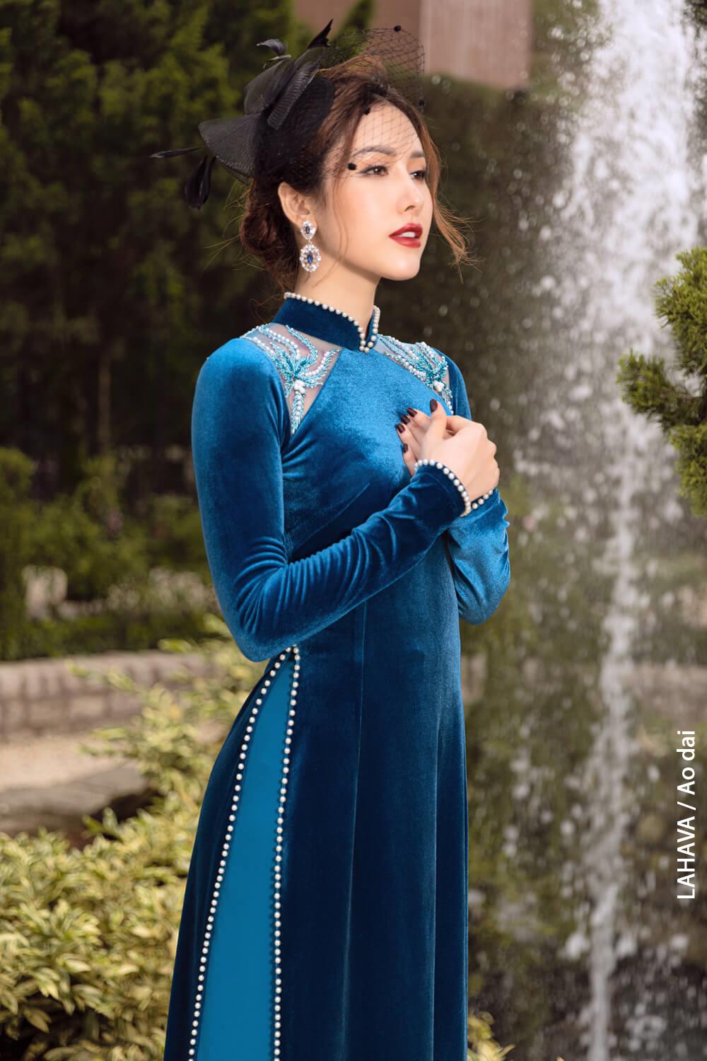 Một mẫu váy dạ hội LAHAVA được thiết kế với chất liệu Nhung HQ