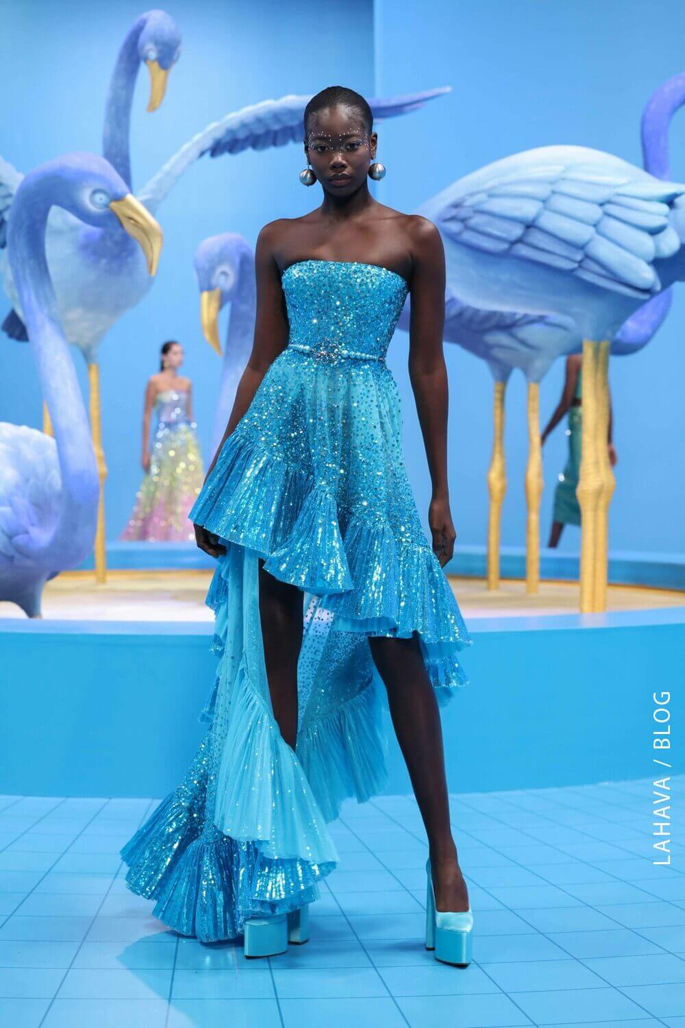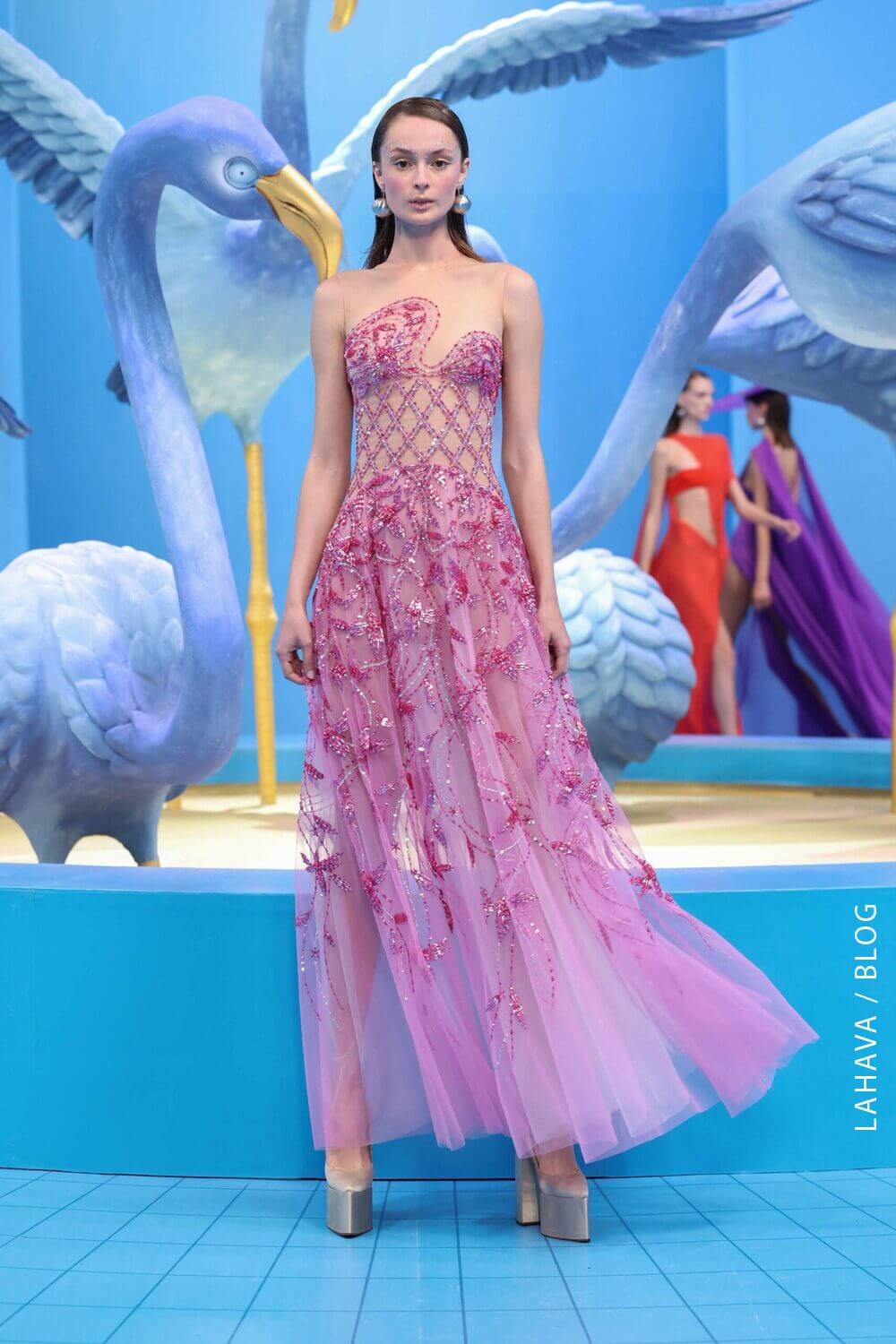 Không còn quá xa lạ với những thiết kế đầm dạ hội xa hoa cao cấp của NTK lừng danh Hobeika, BST SS 2023 được lấy cảm hứng từ những chú chim Hồng Hạc quý phái và xinh đẹp, với tính cách tự do và thích phiêu bạc đã được NTK và giám độc sáng tạo khéo léo lồng ghép vào các thiết kế của mình.