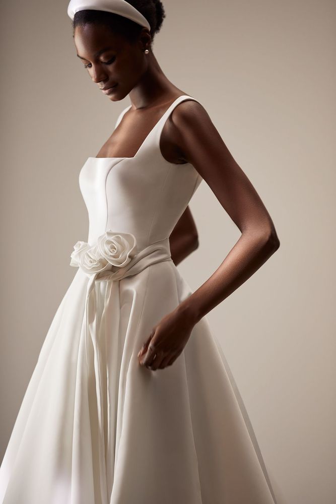 As a minimalist bride, you'll likely be drawn to simple and classic silhouettes like pared-back slip dresses, unadorned ball gowns, and courthouse-chic mini dresses. Or perhaps you want a simple dress with an unexpected twist, like a modern neckline or romantic lace detail. When finding your perfect minimalist wedding frock, look for understated yet elegant details that speak to your personal style without being over the top. It's all about simplicity and subtlety!