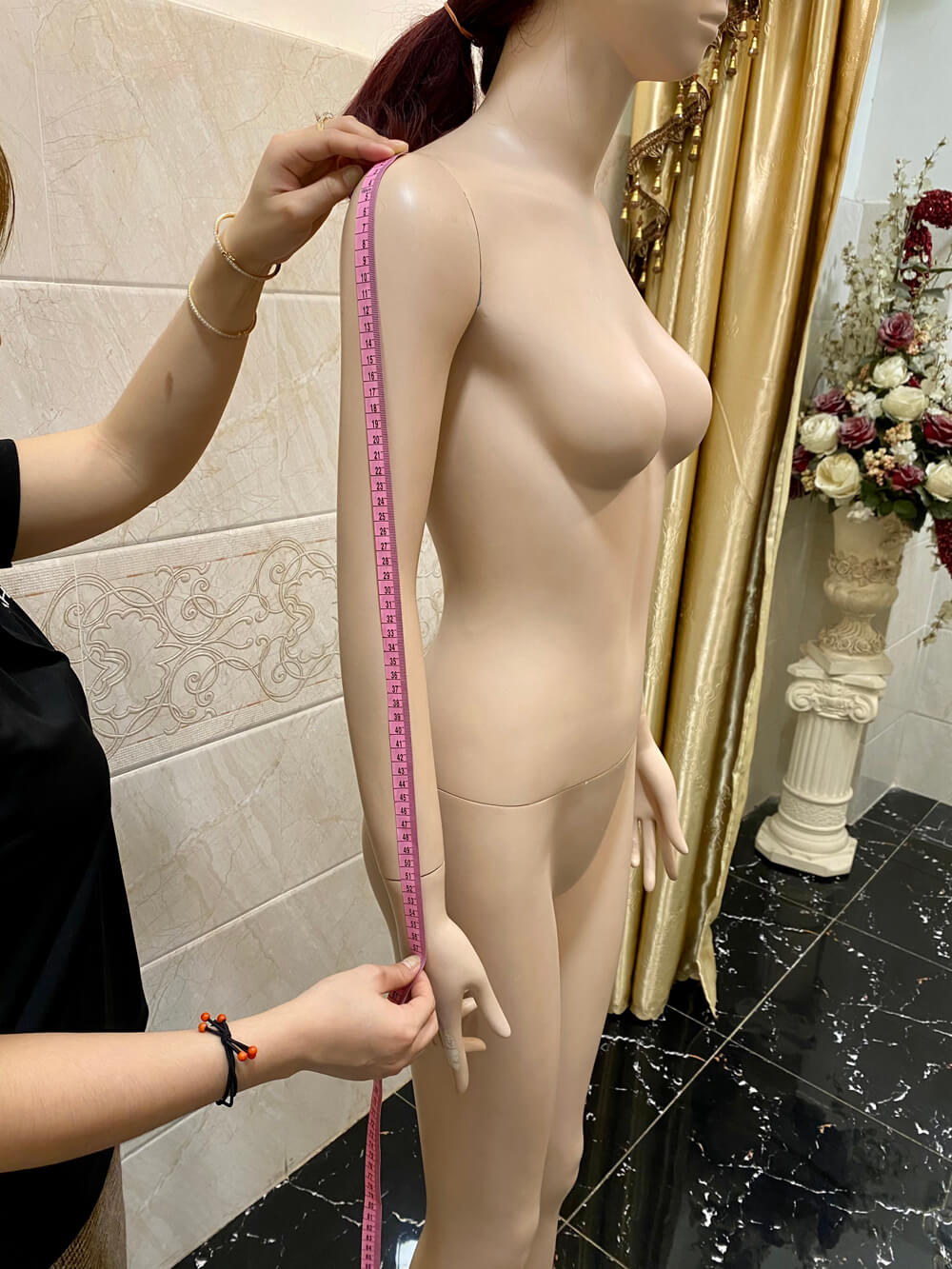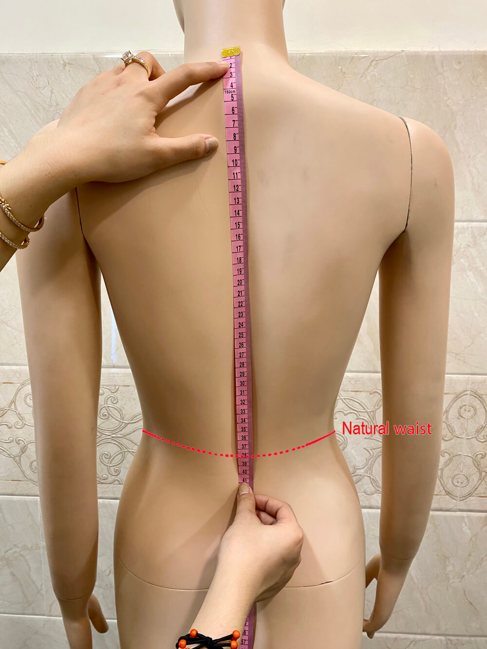 Đặt thước dây dưới chân cổ và đo xuống đỉnh ngực.