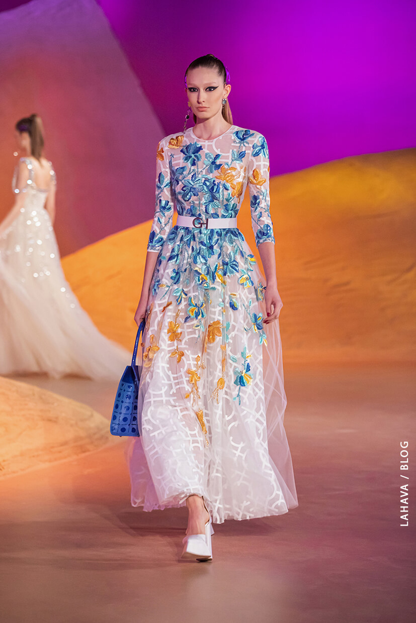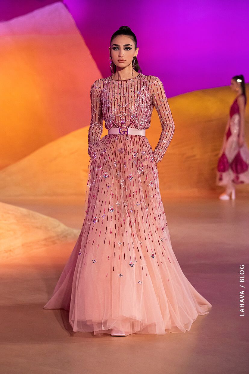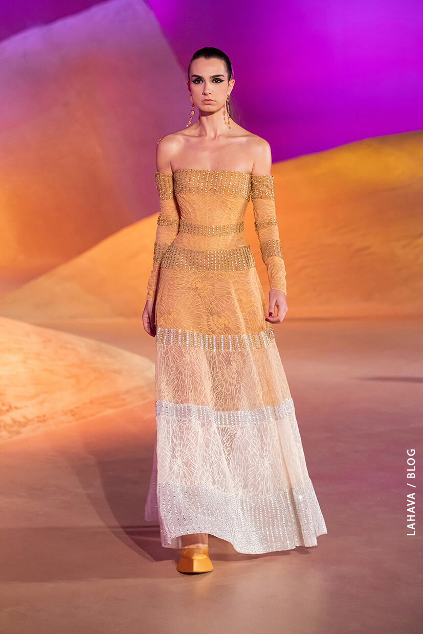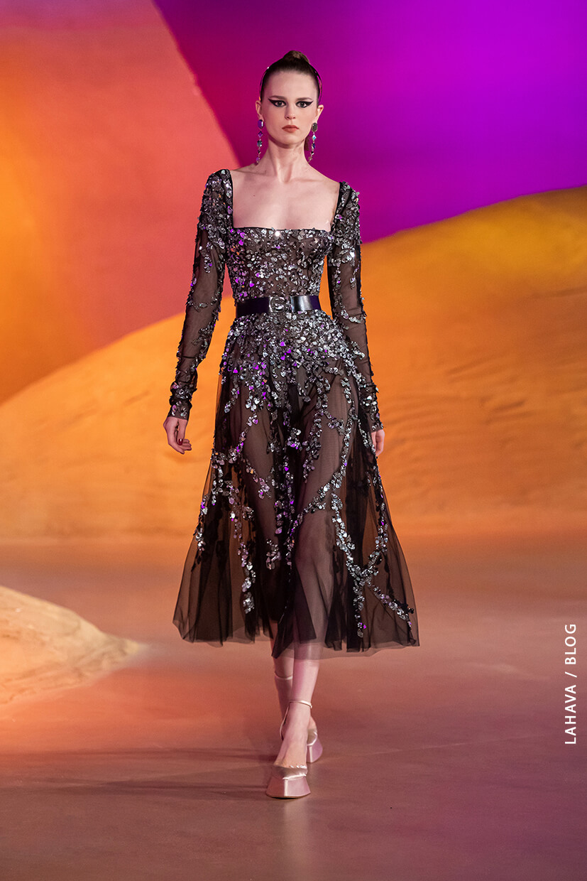 Một hình ảnh phát sáng, giống như hai thiên hà đang va vào nhau, bộ sưu tập Đầm dự tiệc Ready-to-wear Thu Đông 2022/23 của Georges Hobeika mang vẻ đẹp quyến rũ của thập niên 60 với những hình bóng của tương lai, tất cả các set đồ được trình diễn trên "Hành tinh đỏ".