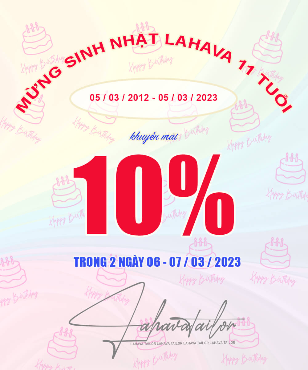 Đặc biệt, nhằm gửi lời tri ân đến khách hàng, LAHAVA sẽ áp dụng chương trình khuyến mãi 10% trong 2 ngày 06 - 07 / 03 / 2023 đối với tất cả sản phẩm trên website, không áp dụng cho những sản phẩm đang sale.
